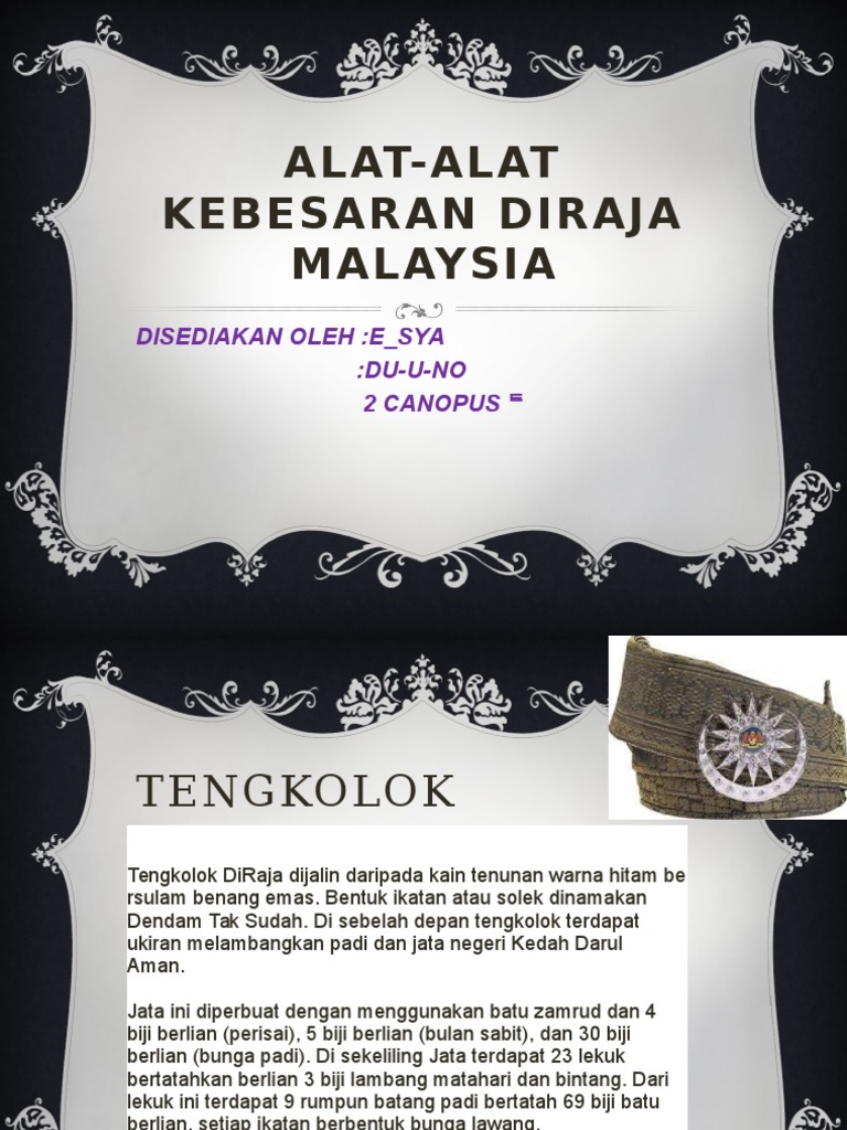 Shah nong chik kepada sultan perak ke 35. El bangunan alat kebesaran diraja o royal regalia building como se conoce en inglés, es un edificio en el centro de bandar seri begawan, la capital del sultanato de brunéi y fue inaugurado el 30 de septiembre de 1992 listas y rincones relacionados con bangunan alat kebesaran diraja brunei. Lagu kebesaran negeri perak yang bertajuk allah lanjutkan usia sultan yang dipilih dan diubahsuai menjadi lagu kebangsaan. Keris panjang diraja alat kebesaran melayu yang sangat dimuliakan adalah keris dan keris panjang diraja adalah alat kebesaran negara yang utama dalam cogan alam cogan alam diperbuat daripada perak. Muzium alat kebesaran diraja está situada a noroeste de kampong sungai lampai, perto de pusat sejarah brunei.