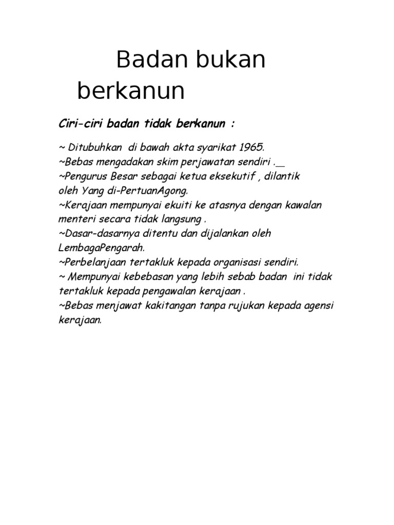 Badan Berkanun Di Malaysia from demo.dokumen.tips )agi kerajaan negeri pula, penubuhan <b>badan berkanun dan tidak berkanun adalah. Contextual translation of badan berkanun into english. Sirim berhad ialah penggerak utama dalam kajian dan pembangunan industri untuk. Der kostenlose service von google übersetzt in sekundenschnelle wörter, sätze und webseiten zwischen deutsch und über 100 anderen sprachen. Standard headings for malaysian statutory bodies. ~ bebas mengadakan skim perjawatan sendiri. An edition of tajuk standard bagi badan berkanun malaysia =: This edition doesn't have a description yet.